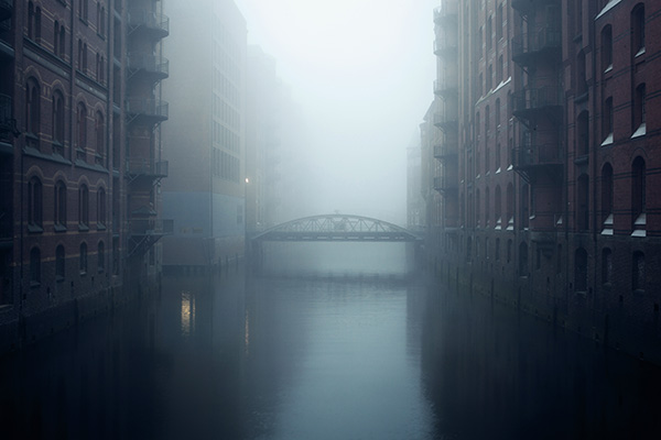Sanfter Nebel wabert über die Fleete (so nennt man die Kanäle)